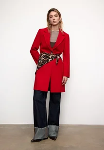 Stradivarius Płaszcz midi z guzikiem o miękkim dotyku Czerwony XS