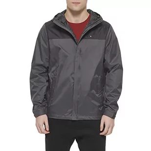 Tommy Hilfiger Męska wodoodporna oddychająca kurtka z kapturem płaszcz przeciwdeszczowy, Czarny/węgiel drzewny, M