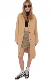 TOMMY JEANS PŁASZCZ KLASYCZNY WEŁNIANY BEŻOWY DO KOLAN Z KLAPAMI L I1E