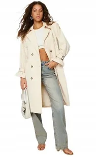 TRENDYOL BEŻOWY KLASYCZNY PŁASZCZ DO KOLAN Z KLAPAMI 32 5AA