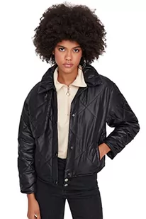 Trendyol Damska kurtka z klapą, zwykła, regularna, zimowa, płaszcz, czarny, S, Czarny