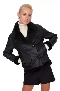 Trendyol Damska kurtka z klapą, zwykła, regularna, zimowa, płaszcz, czarny, S, Czarny