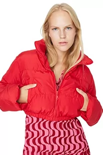 Trendyol Damska kurtka z klapą, zwykła, regularna, zimowa, płaszcz, czerwony, XS, Czerwony