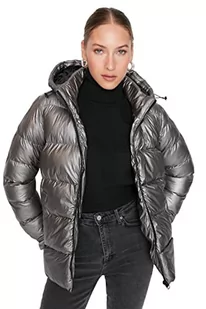 Trendyol Damska kurtka z klapą, zwykła, regularna, zimowa, płaszcz, szary, S, Szary