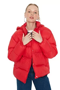 Trendyol Damska kurtka zimowa ze stójką, jednokolorowa, oversize, płaszcz, Czerwony, XS