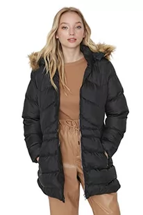 TRENDYOL Damski regularny płaszcz puchowy, jednokolorowy, tkany, zimowy płaszcz, Czarny, S