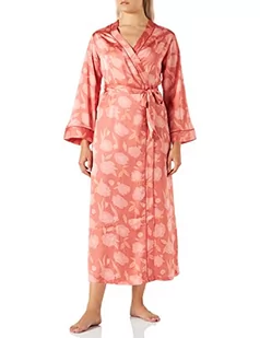 women'secret Damski długi płaszcz z krzyżykiem z satyny poliestrowej, z nadrukiem i rękawami, kimono, szlafrok i kimono, Z nadrukiem pomarańczowym, XL