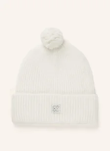 Lekki materiał. Z wywinięciem. Detal z marką. Z domieszką wełny. Czapka z pomponem. Jednolity kolor. Dzianina prążkowana