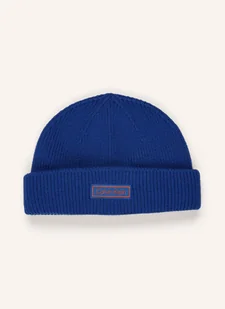 Beanie. Dzianina prążkowana. Z wywinięciem. Naszywka z marką. Z wełny