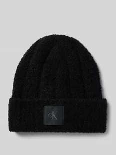 Czapka beanie damska CK Calvin Klein;Mieszanka materiałów z dodatkiem wełny;Brzeg;Imitacja bouclé;Naszywka z logo