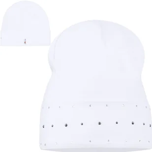 Czapka Czapeczka 46/48 Bawełniania Dziewczęca Ozdobna Dżety Biała Biel
