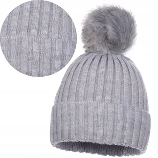 Czapka Damska Jesienna Zimowa Z Pomponem Ciepła Szara Szarość