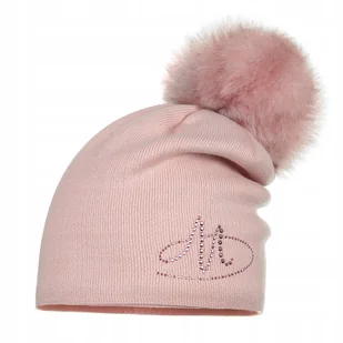 Czapka Damska Zimowa Jesienna Ocieplana Z Pomponem Napis Różowa