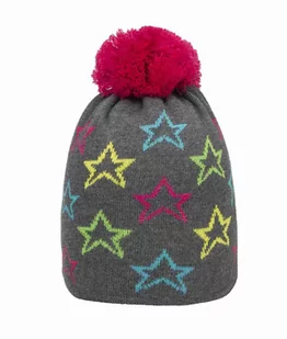 Czapka dziewczęca, szara, gwiazdki, pompon, Döll