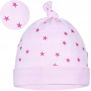 CZAPKA NIEMOWLĘCA DZIECIĘCA BAWEŁNIANA RÓŻOWA W GWIAZDKI roz. 34