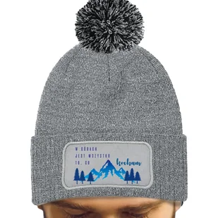 CZAPKA POMPON Bawełna ZIMOWA Szara Dla Miłośnika Gór KOCHAM GÓRY Wzory