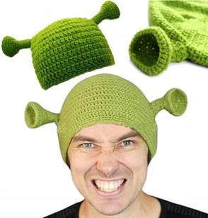 - Bardzo zabawna czapka unisex pleciona Shrek zielona ciepła zimowa do złudzenia przypomina bohatera jednego z najbardziej popularnych filmów animowanych, traktujących o wielkim ogrze i jego humorzastym przyjacielu – ośle.