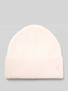 Czapka wełniana damska CK Calvin Klein;Mieszanka wełny;Imitacja dzianiny;Model ‘Pascal’;Aplikacja z logo