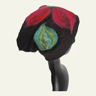 czapka wełniana filcowana zimowa handmade w kwiaty na podszewce-- rozmiar uniwersalny, wełniana, filcowana wełną merynosów, bardzo ciepła, fantastyczna, miła...