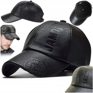 Czapka Z Daszkiem Jesienno Zimowa Skórzana Bejsbolówka Męska Skóra Czarna