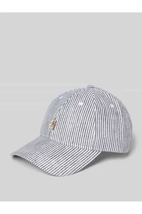 Czapka z daszkiem damska Tommy Hilfiger Sportswear;Efekt: Dwukolorowa;Wzór: w paski;Aplikacja: Aplikacja z logo ze złotym połyskiem;Detale: wzmocniony daszek, obszyte otwory wentylacyjne;Zapięcie: regulowana patka;Materiał: Len