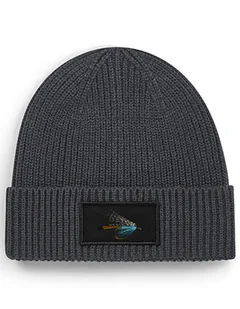Czapka zimowa beanie wędkarska dla wędkarza na ryby na prezent "teal blue and silver" Grafitowa
