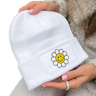 CZAPKA ZIMOWA CLASSIC BIAŁA Kwiaty Stokrotka Wzory
