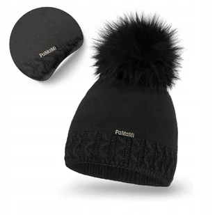 Czapka Zimowa Damskie Czarna z Futerkiem PaMami Modny Pompon Jesienna
