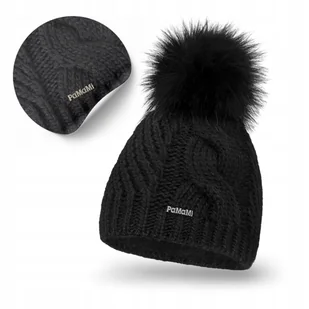 Czapka Zimowa Damskie Czarna z Pomponem Ciepła PaMaMi z Ociepleniem Polarem