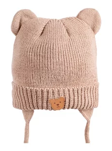 Czapka Zimowa Dziecięca Brązowa Z Misiem Wiązana 42-44