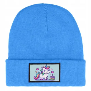 Czapka Zimowa Dziecięca CUTE UNICORN Kreskówki Prezent Wzory Niebieska