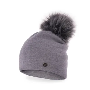 Jasno szara czapka damska z futerkowym pomponem Czapka z pomponem - to jeden z najmodniejszych trendów tej zimy. Wykonana jest z wyjątkowej gładkiej przędzy....
