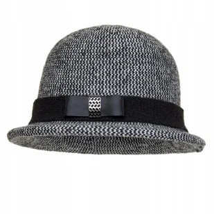 60,5% akryl, 24% poliester, 15,5%wełna Rozmiar: 55-58 cm obwodu głowy Cechy produktu: dwuwarstwowy, większe rondo, lamówka, biżuteryjna blaszka z rypsową taśmą Nr. katalogowy: 2470 Dostępne kolory Czarny/ecru pepitka (na zdjęciu) Kapelusz damski ALLEGRA to elegancki model z większym rondem, wykonany z dwuwarstwowej wełnianej dzianiny.