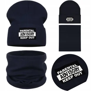 KOMPLET DZIECIĘCY JESIENNY GRANATOWY CZAPKA WYWIJANA + KOMIN BAWEŁNA 40-46