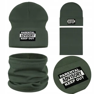 Komplet Dziecięcy Jesienny Zielony Czapka Wywijana + Komin Bawełna 48-52