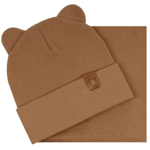 Komplet Dziecięcy Z Uszkami Wiosenny Jesienny Czapka + Komin Prążek 40-44