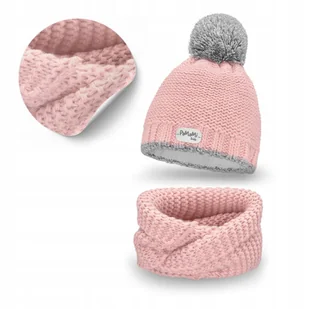 Komplet Zimowy Dziecięcy dla Dziewczynki Różowy Czapka Komin Ciepły