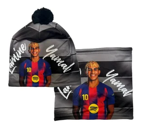 Lamine YAMAL Barcelona szara czapka i komin ocieplone polarem - komplet