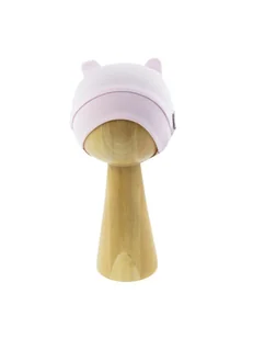 Fikuśna czapka z uszkami, uszyta z wysokogatunkowej bawełny z wszytym szerokim, bezuciskowym ściągaczem. Materiał posiada certyfikat Oeko-Tex Standard 100 Te...