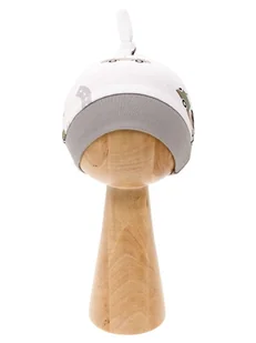 Praktyczna czapka uszyta z wysokogatunkowej, białej bawełny w motyw samochodów. Wykończona bezuciskowym ściągaczem w kolorze popielatym. Materiał posiada cer...