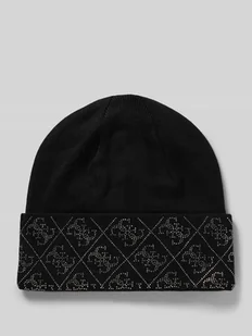 Czapka beanie damska Guess;Mieszanka wiskozy ze streczem;Szerokie rondo;Model ‘NORA’;Detal z logo