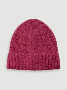 Przepełniona niecodziennym urokiem oraz ceniona za wiele praktycznych możliwości wykorzystania, czapka damska z delikatnym ozdobnym włosiem oraz efektownym podwinięciem u jej dołu. Posiada ona interesującą fakturę na całości, będąc wykonaną z ciepłej oraz dobrej gatunkowo dzianiny. Dokładnie przylega ona do kobiecej głowy, dzięki czemu stanowi ona skuteczną barierę przed chłodem oraz mrozem i sprawdza się zarówno połączona z eleganckim płaszczem, jak i również sportową kurtką. Czapka damska dostępna w kolorze bordowym TSKW25CZA000444M00.