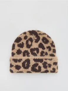 Reserved - Czapka beanie w panterkę - brązowy