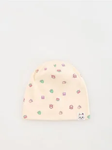 Czapka o regularnym kroju, uszyta z bawełnianego materiału.