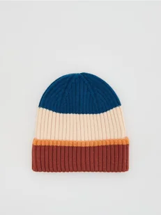 Czapka o prostym fasonie, wykonana z prążkowanej dzianiny.