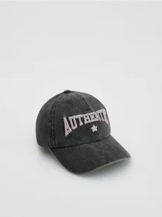 Reserved - Jeansowa czapka z haftem - ciemnoszary