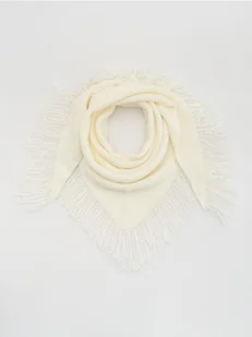 Reserved - Trójkątny szalik z frędzlami - złamana biel