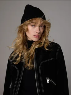 Czapka typu beanie, wykonana z wełny merino z dodatkiem kaszmiru.