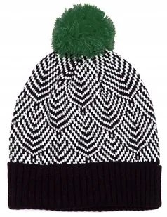 Czapka Graficzna Kod produktu: cz14306-5 Kolorystyka: czarny, zielony Podwijana czapka w czarno-biały deseń. Ozdobiona neonowym pomponem. Oryginalna i twarzo...