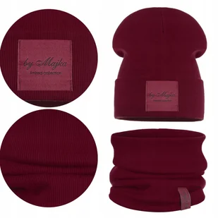 WIOSENNY KOMPLET DZIECIĘCY PODWÓJNY MATERIAŁ CZAPKA KOMIN BORDOWY 46-52